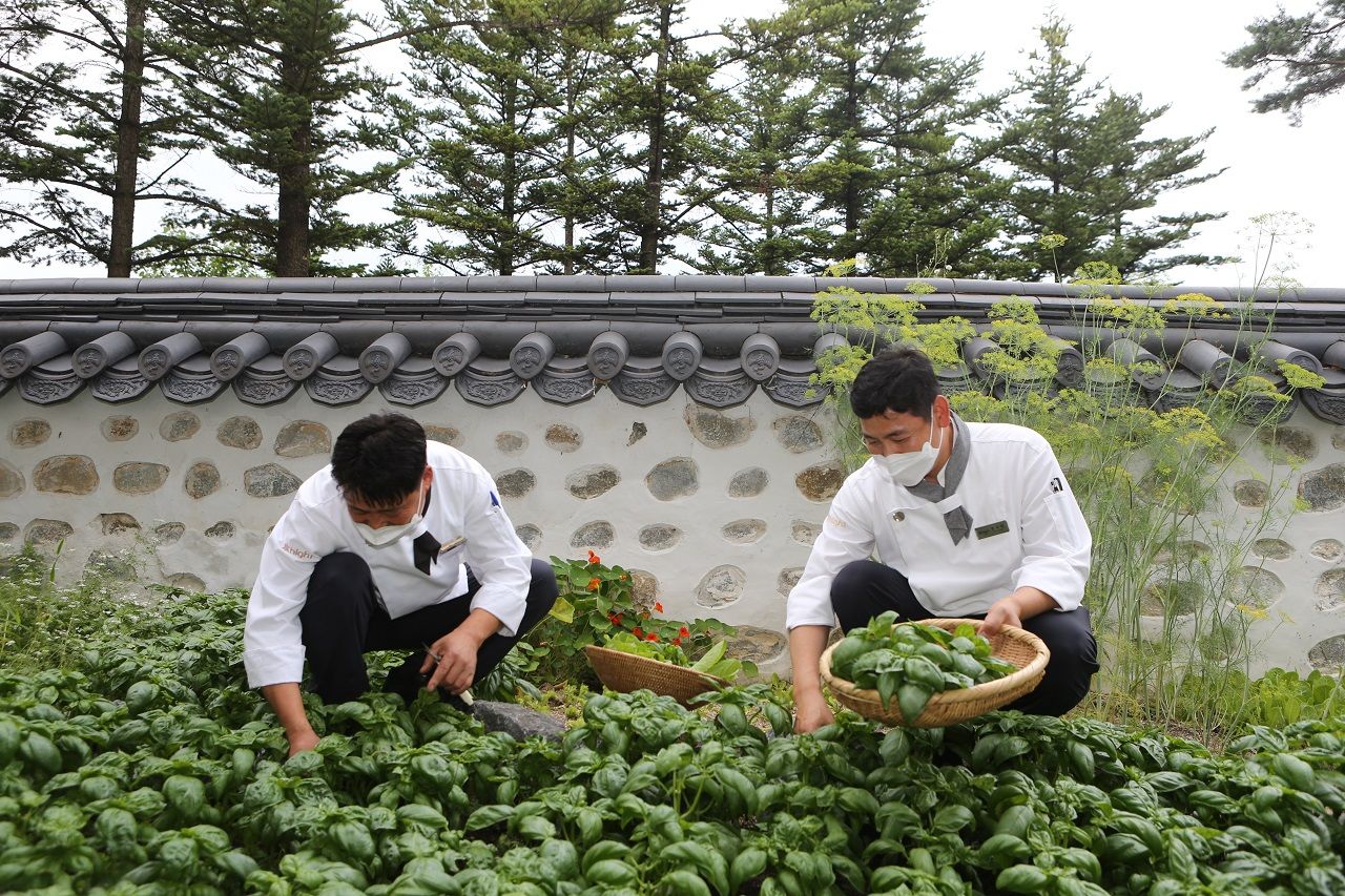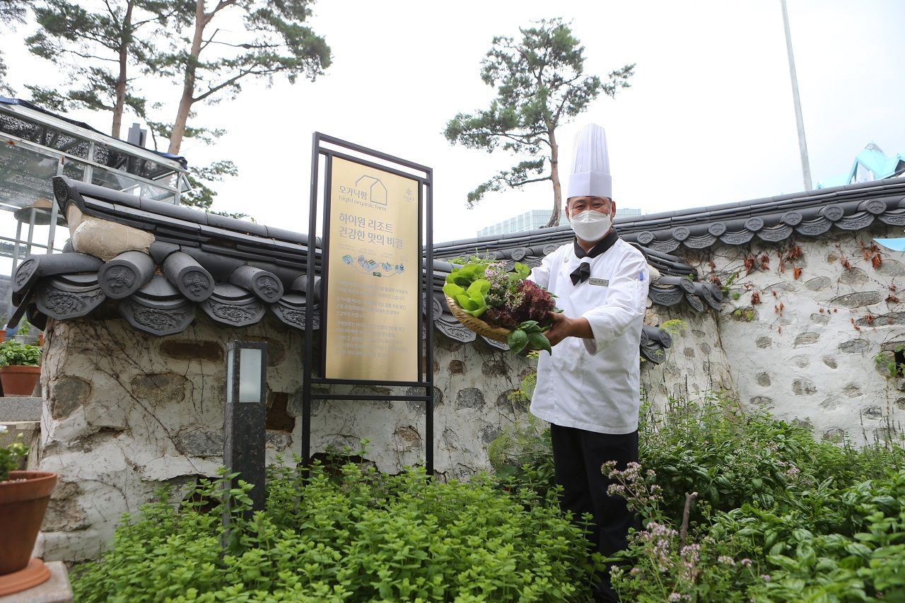 A kitchen garden is a garden decorated with vegetables, herbs, flowers and fruits that can be used as ingredients. In ‘Organic Farm’, an eco-friendly kitchen garden operated by High1 Resort, 20 kinds of crops are grown with the sweat and devotion of the chefs.